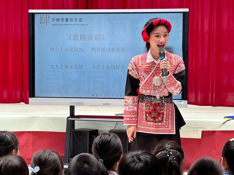 如今,她不仅在直播间里向天南地北的网友传唱畲歌,还接过师父的接力棒,开设免费公益课堂,教孩子们认识畲语、演唱畲歌。