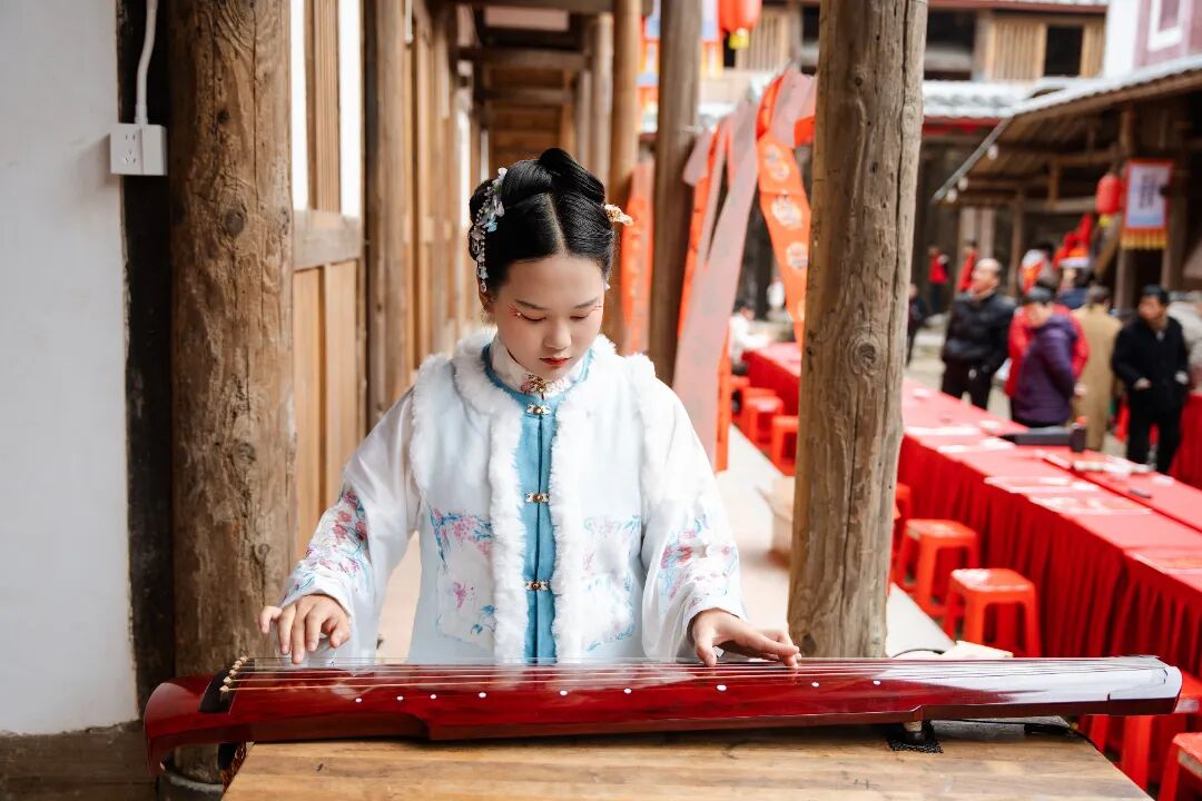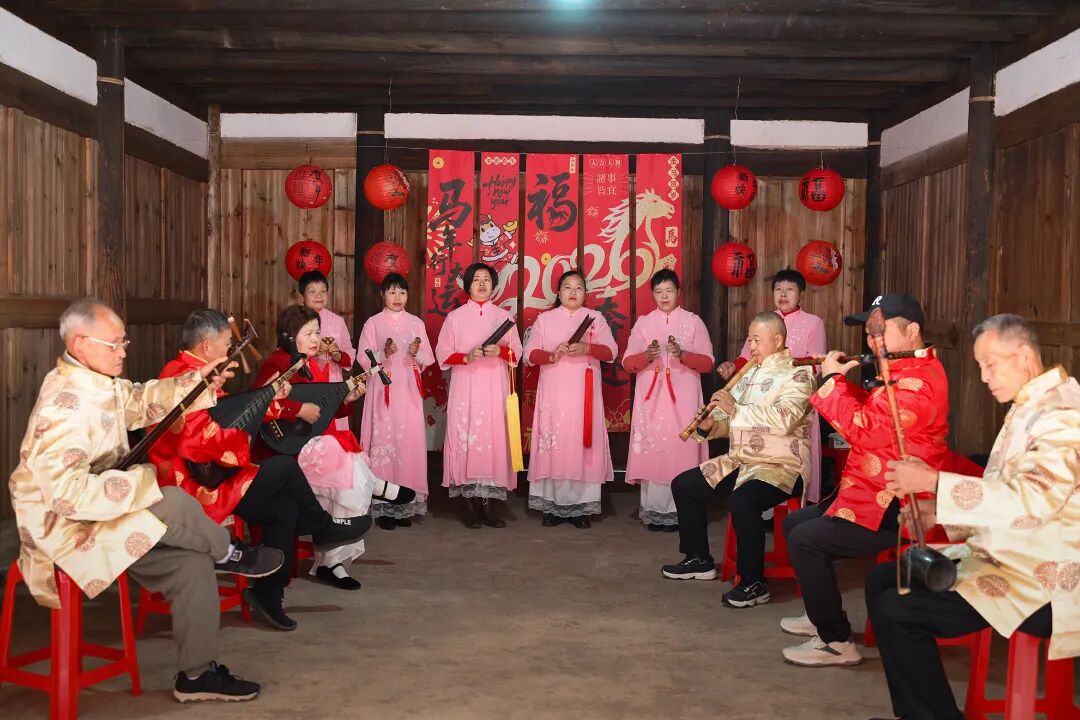 古韵悠悠,乐声绕梁,双乐展演区成为现场最具雅韵的角落。县古琴协会与三班南音社联袂献演,为现场观众奏响千年古音。古琴之清雅与南音之婉转在古堡的飞檐翘角间交织回荡,与古建筑的古朴氛围相得益彰,为新春佳节增添了浓厚的典雅文化氛围,让群众在悠扬的古乐声中感受中华优秀传统文化的独特魅力,沉浸式体验闽南古乐的艺术精髓。