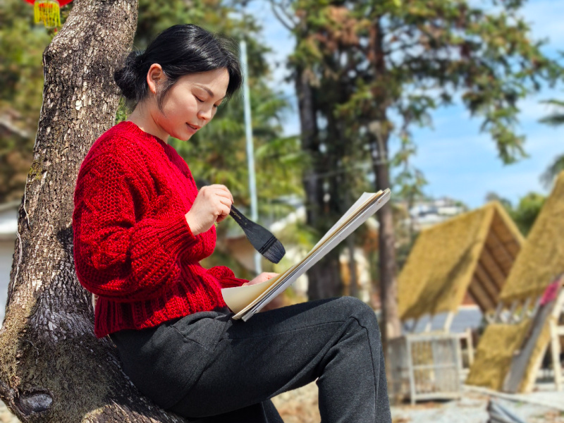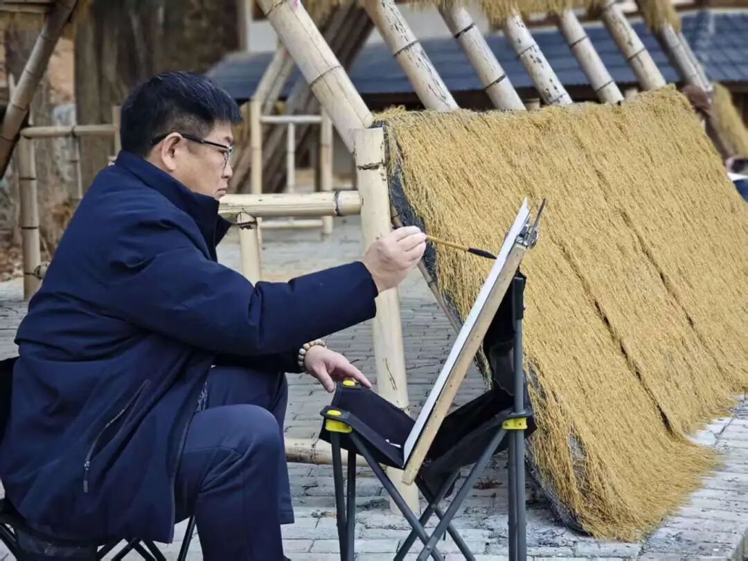 大兴堡的古朴厚重与新春的喜庆祥和,成为县美术家协会艺术家们笔下最美的风景。美术家们带着画板、颜料深入古堡内外,以笔墨为媒、以匠心为魂,将大兴堡的百年土石建筑之美、红绸装点的新春喜庆之景、闽南乡村的山水秀色与群众欢度新春的鲜活瞬间一一定格于画布之上。艺术家们时而凝神构思,时而挥笔勾勒,时而细致上色,将对本土建筑的热爱、对乡愁文脉的理解融入每一笔色彩与线条中。